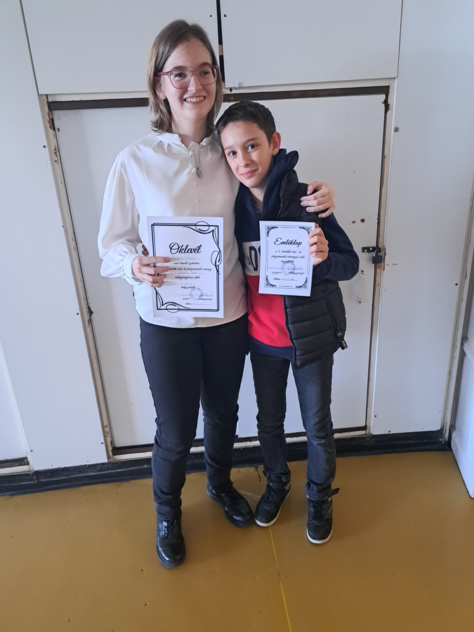 5-6. évf. 4. helyezés Varga Zsombor 6.a (félkészítő tanára Gránic Judit)